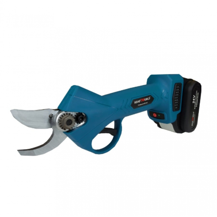 Акумулаторната лозарска ножица KraftWorld ProPruner е предназначена за професионална употреба и е снабдена със стоманени ножове. Градинската ножица работи с 36-волтова акумулаторна батерия и има капацитет на рязане до 33 mm. Страхотна ножица, която гарантира гладко рязане на клони без много усилие, което е нейното уникално преимущество спрямо ръчните ножици. С едно зареждане на батерията лозарската ножица може да направи до 4500 разреза. Снабдена е с индикатор, който указва състоянието на батерията.